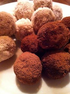 die dunklen sind mit kakaopulver, mandeln, vielen datteln und auch etwas agavendicksaft. diesmal hab ich auch nicht gleich alle auf einmal gegessen, sondern jeden tag nur ein paar stück... so hatte ich die ganze woche was davon :-)